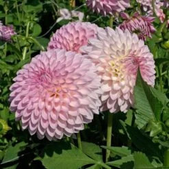 Ball form Dahlia ‘Linda’s Baby’ has rapidly become a mainstay in flower arrangers’ bouquets. Fully double, rounded 3–4″ flowers unfold in a popular café-au-lait shade of muted peach.