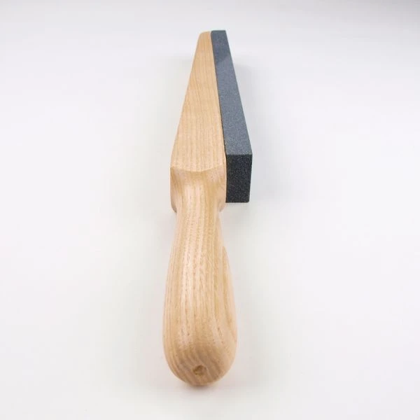Keep your tools and blades sharp with this hard-working whetstone. The silicon-carbide stone is extra hard, and it’s fitted into a carefully crafted Beech wood handle designed for comfortable gripping. Excellent for heavy duty tools including axes, the edges of shovels, large shears, and more. Simply soak the whetstone for 30 minutes. This allows the stone to absorb water, which combines with particles released from the stone creating an abrasive material for sharpening blades. Overall length: 13″.