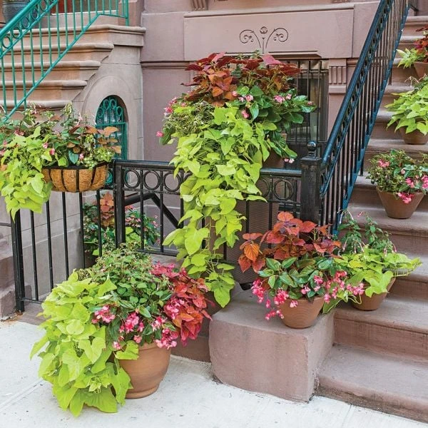 Some plants require more space in container gardens than others. To accommodate the 6 plants in this collection, we recommend a container at least 18″ in diameter and 12″ deep.