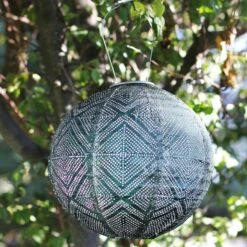 Illuminate your patio or a garden path with this captivating ink-toned solar globe inspired by the intricately patterned lanterns commonly seen in Asian gardens. Attractive during the daylight hours, the lantern emits dazzling patterns of light throughout the evening. Handmade of durable Tyvek™ with stainless steel hardware, it is designed to withstand the elements with grace.