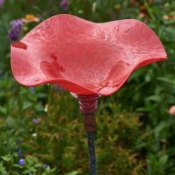 Add a splash of vibrant color to your garden with our handblown glass birdbath in lush scarlet. Created by an accomplished sculptor and glass artist, each one-of-a-kind piece features subtle variations, accentuating its uniqueness. Add water and use the distinctive fluted bowl as a birdbath, or float a candle to add nighttime drama to an outdoor space. This functional work of art should come indoors for storage during freezing temperatures.