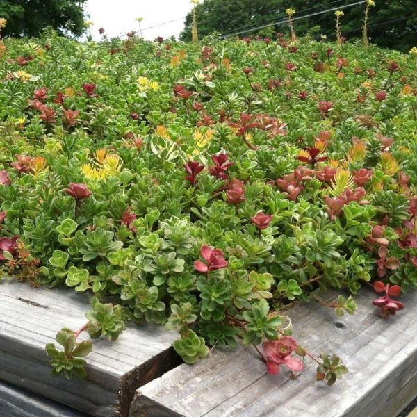 It doesn’t get any easier than this Sedum Tile® Color Splash. Each “tile” is approximately 10″ x 20″ and includes a selection of varieties chosen for their harmonious colors and contrasting forms. For a 50 sq ft bed, we recommend using 12 tiles planted 12″ apart from each other, and within a couple of years plants will fill in nicely. Ready-made for gardens, rooftops, and containers.