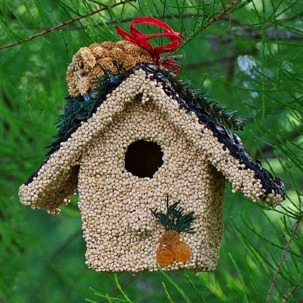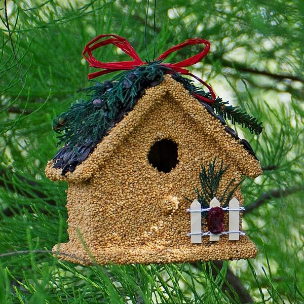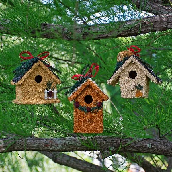 Three darling ornamental houses make up our Trio of Birdseed Cottages with each designed to attract and feed a wide variety of feathered friends. The structures begin with an ornamental wooden frame that gets brushed in edible gelatin then thickly plastered with premium seeds and edible decorations. These cute cottages make a splendid gift for bird-lovers, neighbors, teachers, and friends. Set of 3.