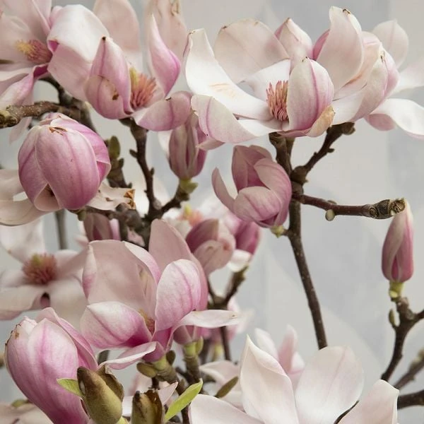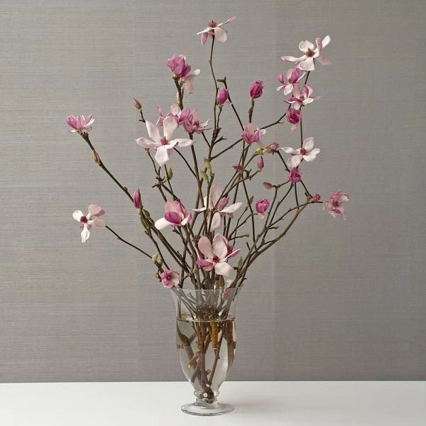 The satiny, fragrant pink blossoms of Tulip Magnolia are a lovely treat in the depths of winter. In bud stage and in bloom, these flowering branches add natural beauty and sculptural form to any décor. Due to the large size of some of the branches, the overall number you receive may vary, but we guarantee you will be pleased with your display. We recommend the use of a large, sturdy vase with these impressive branches.